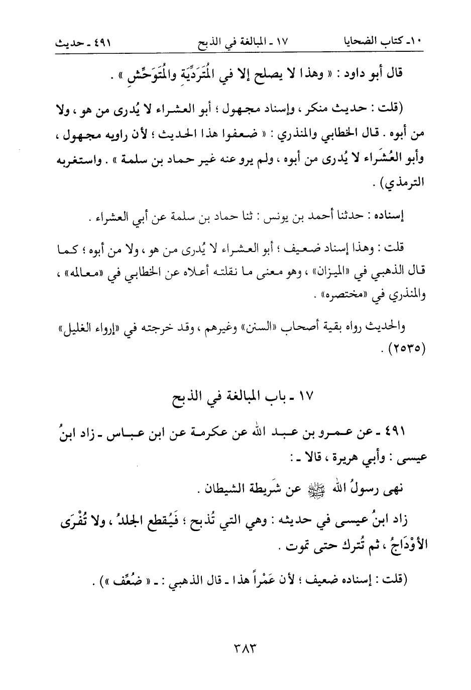 17- باب المبالغة في الذبح