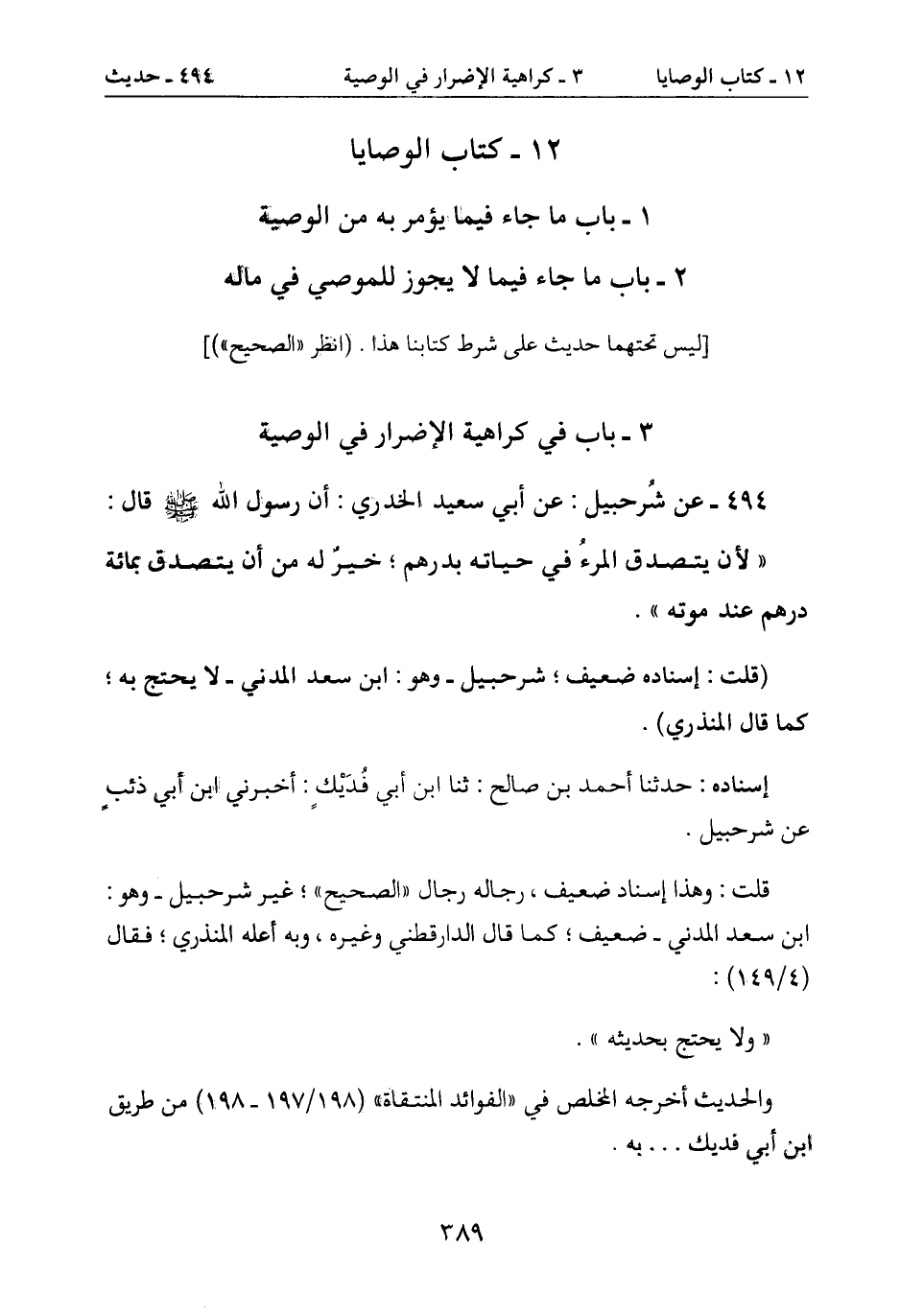494- عن شُرحبيل: عن أبي سعيد الخدري: أن رسول الله صَلَّى اللَّهُ عَلَيْهِ وَسَلَّمَ قال: