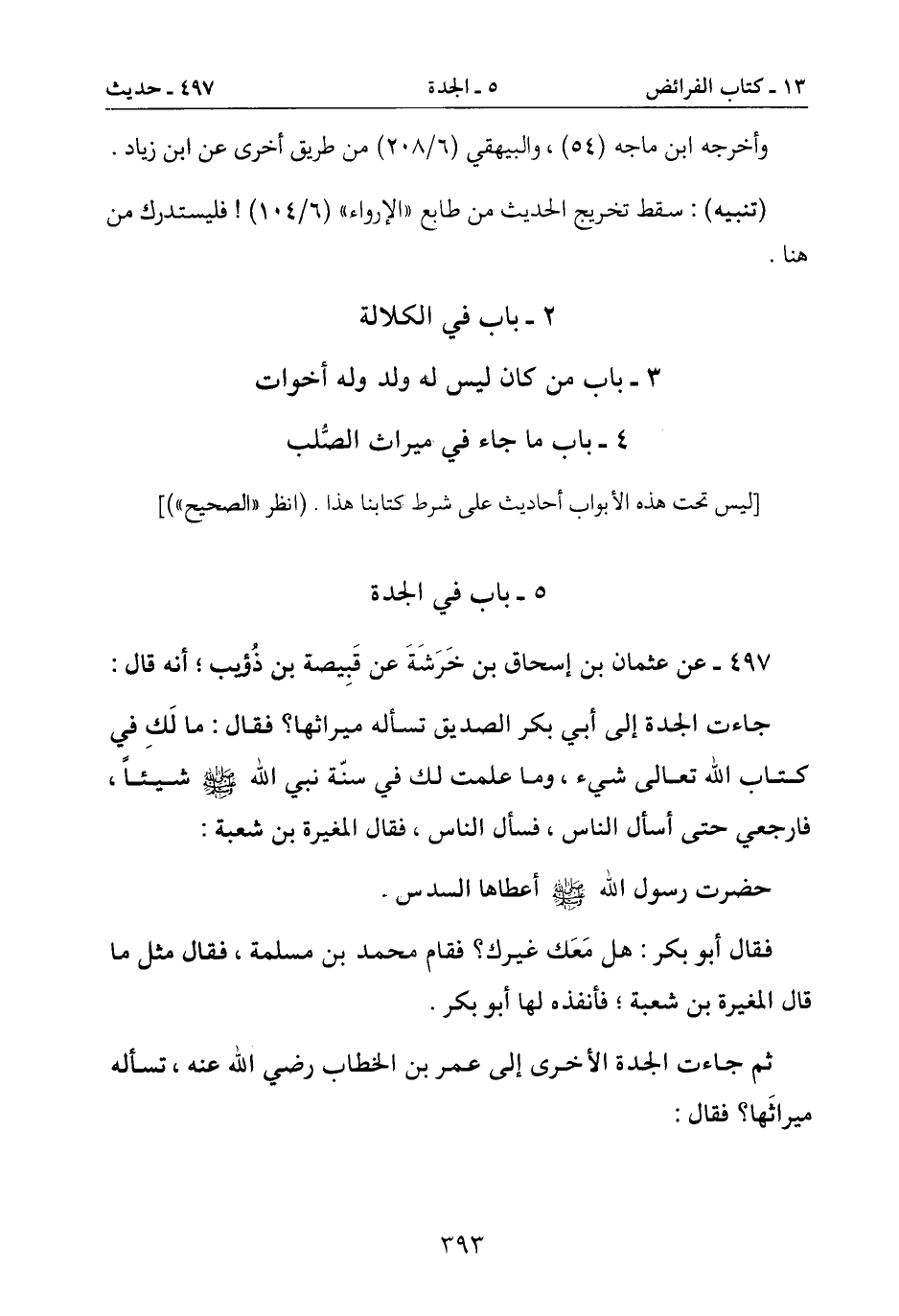 جاءت الجدة إلى أبي بكر الصديق تسأله ميراثها؟ فقال: ما لكِ في