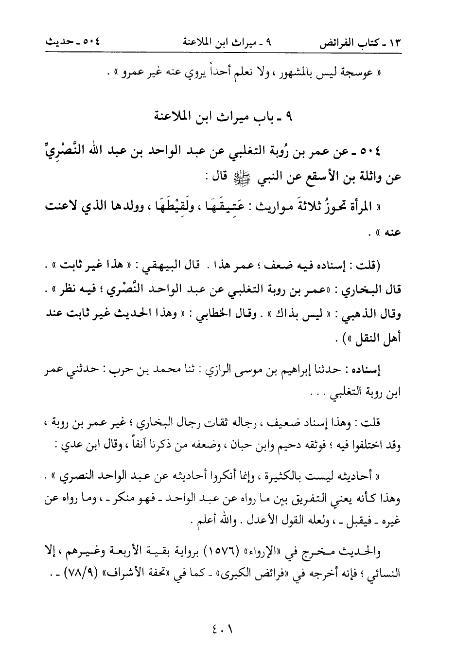 504- عن عمر بن رُوبة التغلبي عن عبد الواحد بن عبد الله النّصْرِيِّ