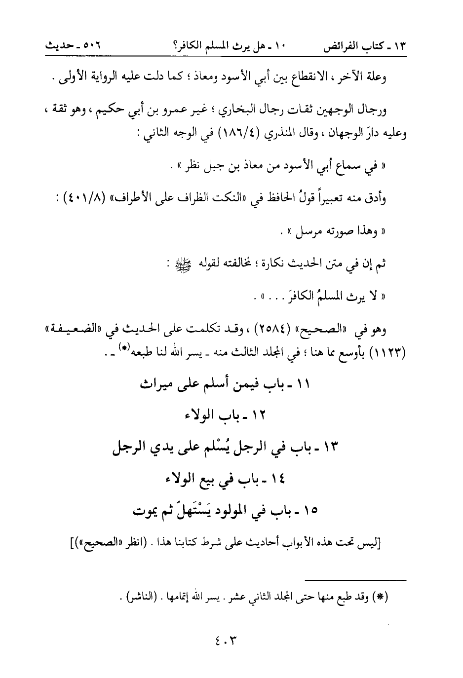 " لا يرث المسلمُ الكافر ... ".