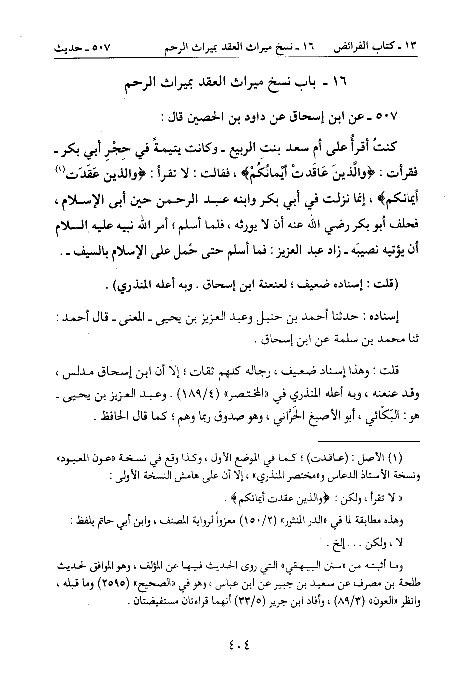 فقرأت: (والّذين عاقدتْ أيْمانُكُمْ) ، فقالت: لا تقرأ: (والذين عقدت (1)