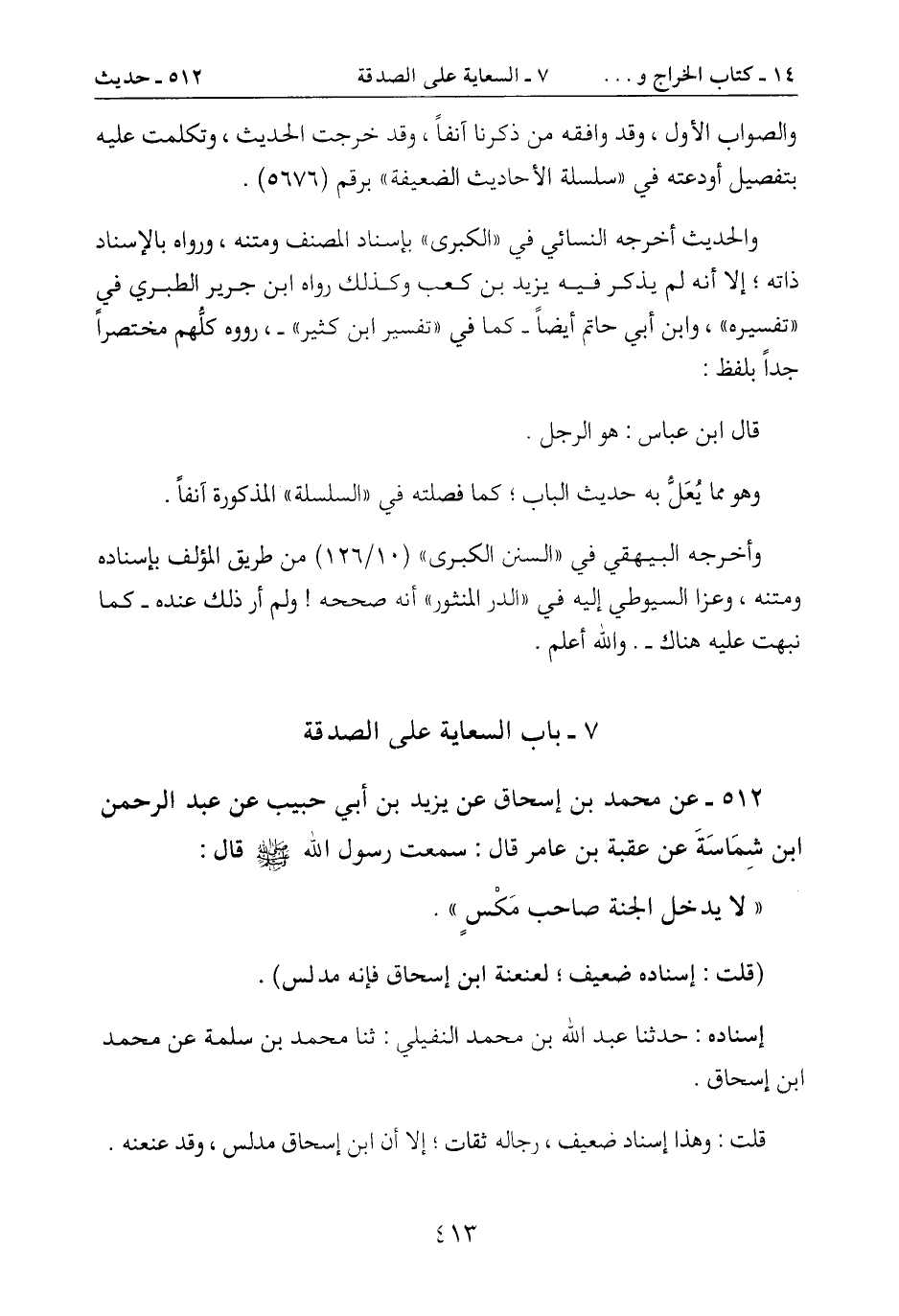 512- عن محمد بن إسحاق عن يزيد بن أبي حبيب عن عمد الرحمن