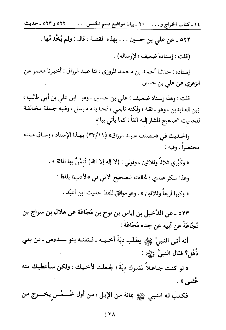 522- عن علي بن حسين ... بهذه القصة، قال: ولم يُخْدِمْها.