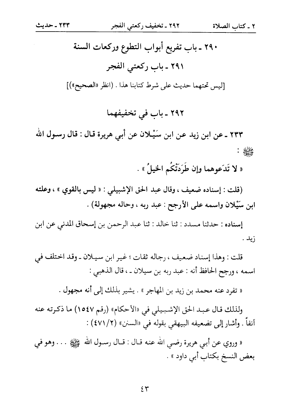 233- عن ابن زيد عن ابن سيْلان عن أبي هريرة قال: قال رسول الله صَلَّى اللَّهُ عَلَيْهِ وَسَلَّمَ