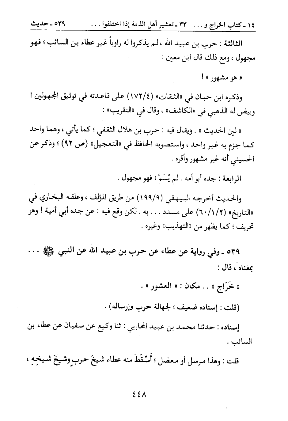 539- وفي رواية عن عطاء عن حرب بن عبيد الله عن النبي صَلَّى اللَّهُ عَلَيْهِ وَسَلَّمَ ...