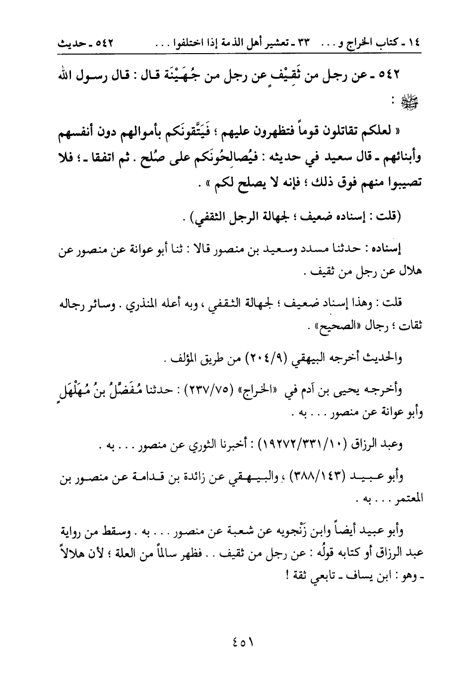 وأخرجه يحيى بن ادم في "الخراج " (75/237) : حدثنا مُفضلُ بنُ مُهلْهل
