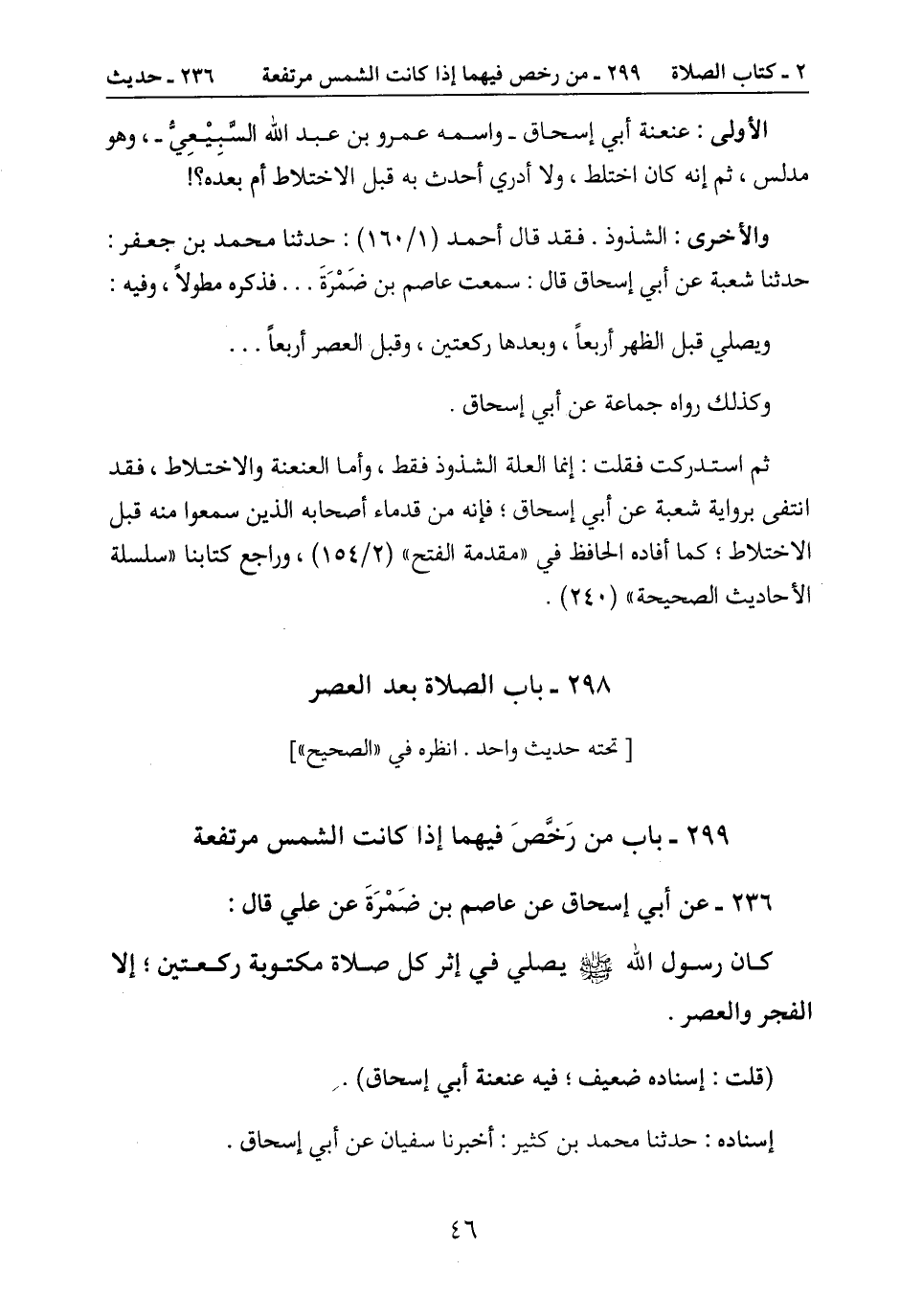 236- عن أبي إسحاق عن عاصم بن ضمْرة عن علي قال: