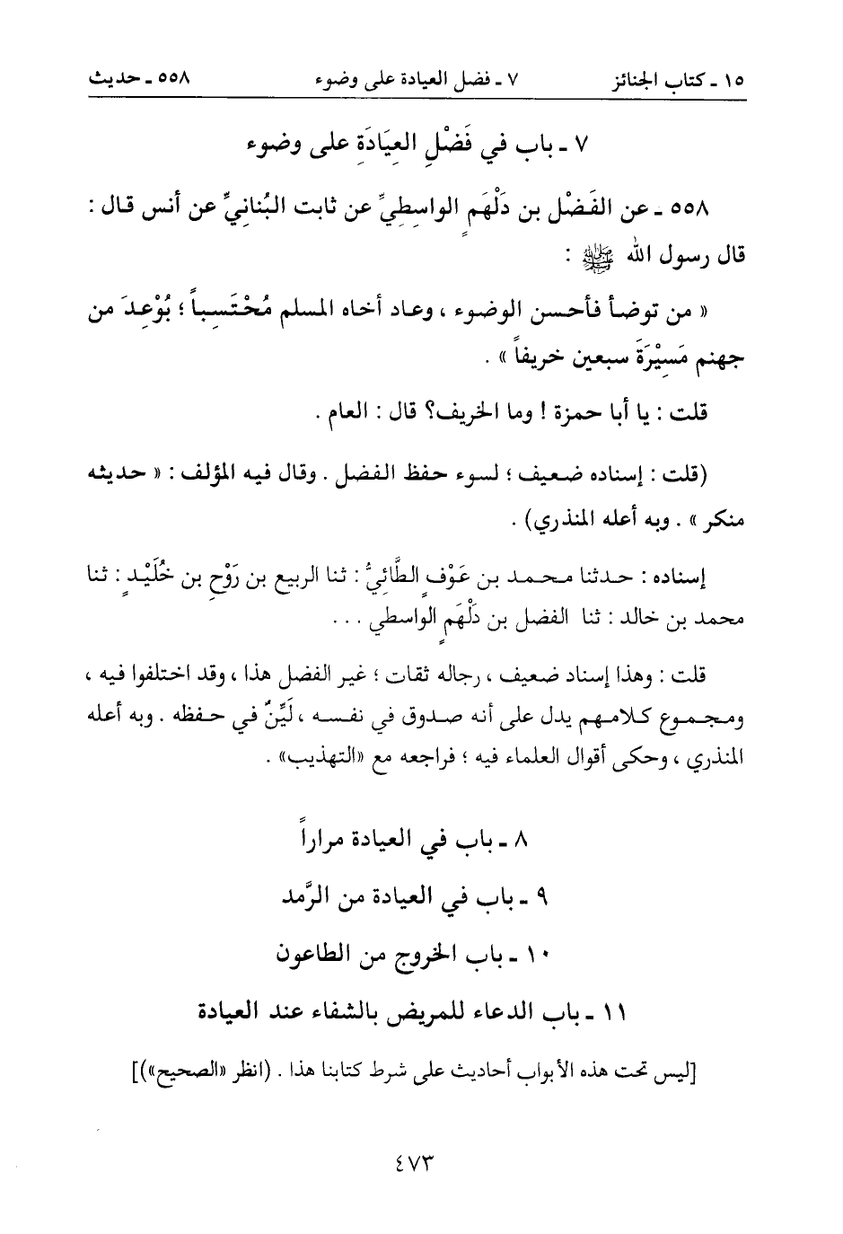 (قلت: إسناده ضعيف؛ لسوء حفظ الفضل. وقال فيه المؤلف: " حديثه