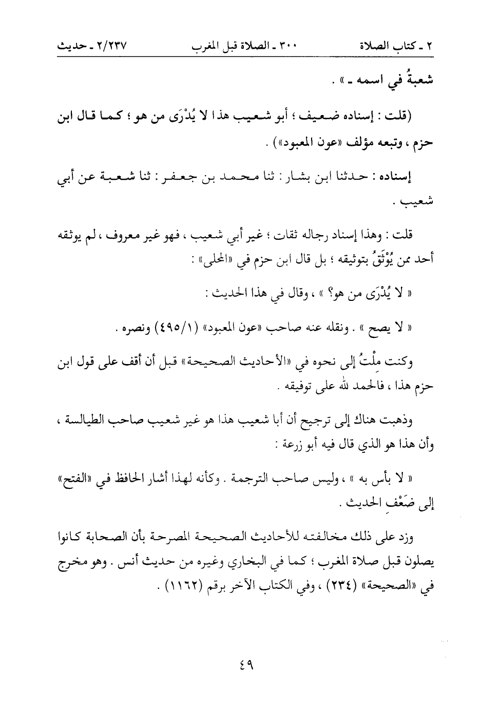 وذهبت هناك إلى ترجيح أن أبا شعيب هذا هو غير شعيب صاحب الطيالسة،