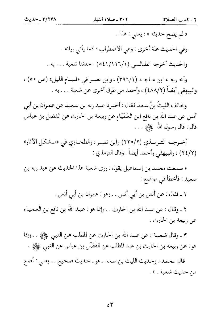 3- وقال شعبة: عن عبد الله بن الحارث عن المطلب عن النبي صَلَّى اللَّهُ عَلَيْهِ وَسَلَّمَ.. وإنما
