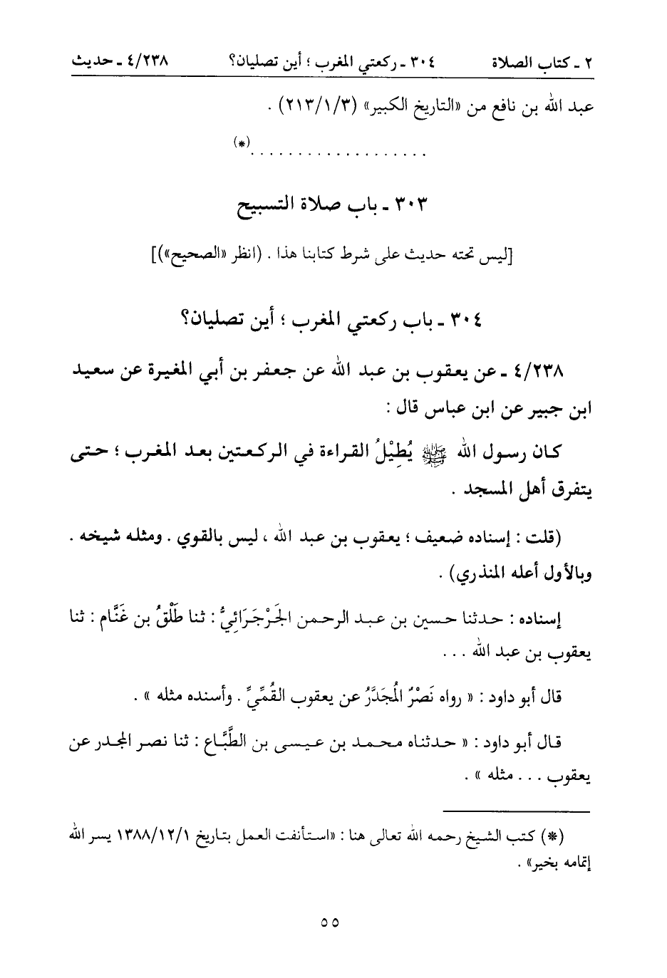 قال أبو داود: " رواه نصْرٌ المُجدرُ عن يعقوب القُمِّيِّ. وأسنده مثله ".