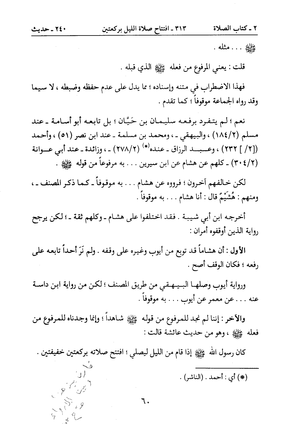الأول: أن هشاماً قد توبع من أيوب وغيره على وقفه. ولم نر أحداً تابعه على