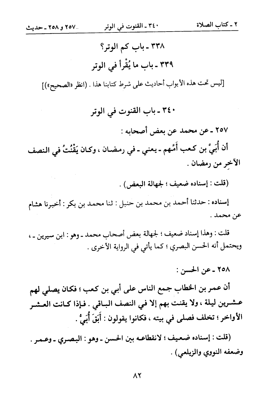 أن أُبي بن كعب أمّهم- يعني- في رمضان، وكان يقْنُتُ في النصف