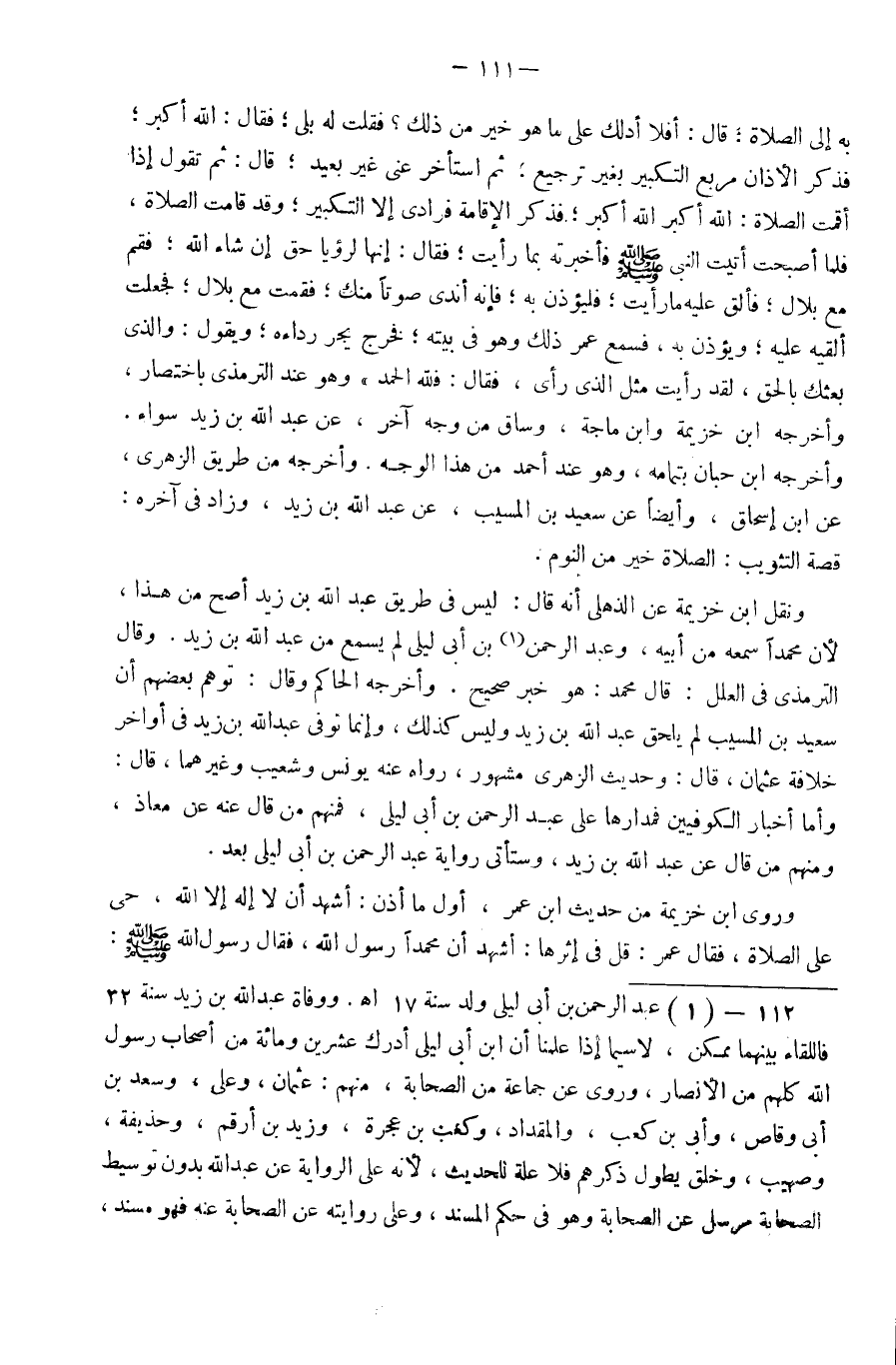 وَنقل ابْن خُزَيْمَة عَن الذهلي أَنه قَالَ لَيْسَ فِي طَرِيق عبد الله بن زد أصح من هَذَا لِأَن مُحَمَّدًا سَمعه من أَبِيه وَعبد الرَّحْمَن بن أبي لَيْلَى لم يسمع من عبد الله بن زيد وَقَالَ التِّرْمِذِيّ فِي الْعِلَل قَالَ مُحَمَّد هُوَ خبر صَحِيح وَأخرجه الْحَاكِم وَقَالَ توهم بَعضهم أَن سعيد بن الْمسيب لم يحلق عبد الله بن زيد وَلَيْسَ كَذَلِك وَإِنَّمَا توفى عبد الله بن زيد فِي أَوَاخِر خلَافَة عُثْمَان قَالَ وَحَدِيث الزُّهْرِيّ مَشْهُور رَوَاهُ عَنهُ يُونُس وَشُعَيْب وَغَيرهمَا قَالَ وَأما أَخْبَار الْكُوفِيّين فمدارها عَلَى عبد الرَّحْمَن بن أبي لَيْلَى فَمنهمْ من قَالَ عَنهُ عَن معَاذ وَمِنْهُم من قَالَ عَن عبد الله بن زيد وَسَتَأْتِي رِوَايَة عبد الرَّحْمَن بن أبي لَيْلَى بعد