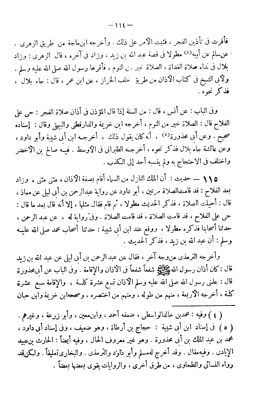 115 - حَدِيث أَن الْملك النَّازِل من السَّمَاء أَقَامَ بِصفة الْأَذَان مثنى مثنى وَزَاد بعد الْفَلاح قد قَامَت الصَّلَاة مرَّتَيْنِ أَبُو دَاوُد عَن رِوَايَة عبد الرَّحْمَن بن أبي لَيْلَى عَن معَاذ قَالَ أحيلت الصَّلَاة فَذكر الحَدِيث مطولا ثمَّ قَامَ فَقَالَ مثلهَا إِلَّا أَنه قَالَ بعد مَا قَالَ حَيّ عَلَى الْفَلاح قد قَامَت الصَّلَاة قد قَامَت الصَّلَاة وَفِي رِوَايَة لَهُ عَن عبد الرَّحْمَن حَدثنَا أَصْحَابنَا فَذكره مطولا وَوَقع عِنْد ابْن أبي شيبَة حَدثنَا أَصْحَاب مُحَمَّد صَلَّى اللَّهُ عَلَيْهِ وَسَلَّم َ أَن عبد الله بن زيد فَذكر الحَدِيث
