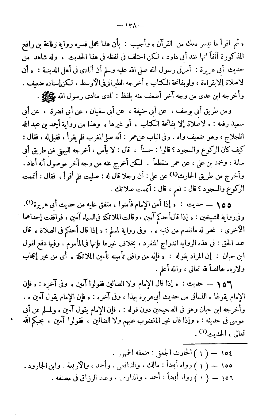 156 - حَدِيث إِذا قَالَ الإِمَام وَلَا الضَّالّين فَقولُوا آمين وَفِي آخِره فَإِن الإِمَام يَقُولهَا النَّسَائِيّ من حَدِيث أبي هُرَيْرَة بِهَذَا وَفِي آخِره فَإِن الإِمَام يَقُول آمين وَأخرجه ابْن حبَان وَهُوَ فِي الصَّحِيحَيْنِ دون قَوْله فَإِن الإِمَام يَقُول آمين وَلمُسلم عَن أبي مُوسَى فِي حَدِيثه وَإِذا قَالَ غير المغضوب عَلَيْهِم وَلَا الضَّالّين فَقَالُوا آمين يجبكم الله تَعَالَى الحَدِيث
