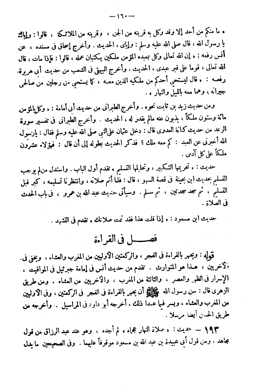 193 - حَدِيث صَلَاة النَّهَار عجماء لم أَجِدهُ وَهُوَ عِنْد عبد الرَّزَّاق من قَول مُجَاهِد وَمن قَول أبي عُبَيْدَة بن عبد الله بن مَسْعُود مَوْقُوفا عَلَيْهِمَا وَفِي الصَّحِيحَيْنِ مَا يدل