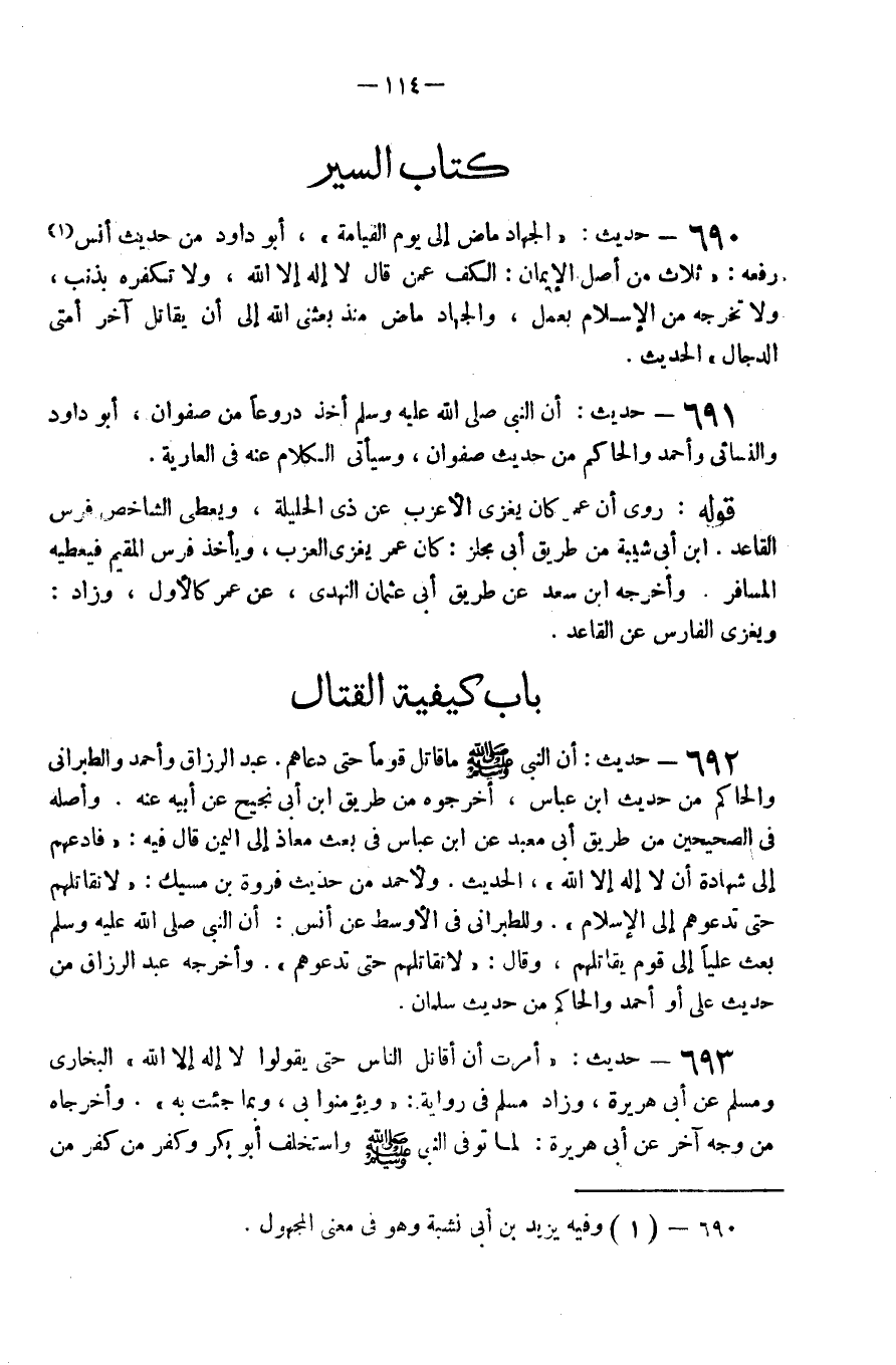 690 - حَدِيث الْجِهَاد مَاض إِلَى يَوْم الْقِيَامَة أَبُو دَاوُد من حَدِيث أنس رَفعه ثَلَاث من أصل الْإِيمَان الْكَفّ عَمَّن قَالَ لَا إِلَه إِلَّا الله وَلَا تكفره بذنب وَلَا تخرجه من الْإِسْلَام بِعَمَل وَالْجهَاد مَاض مُنْذُ بَعَثَنِي الله إِلَى أَن يُقَاتل آخر أمتِي الدَّجَّال الحَدِيث