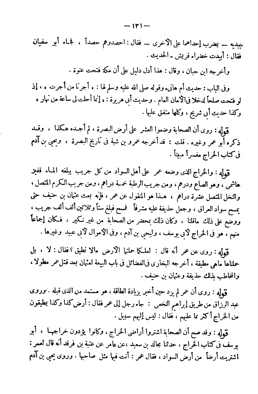 قَوْله رَوَى أَن الصَّحَابَة وضعُوا الْعشْر عَلَى أَرض الْبَصْرَة لم أَجِدهُ هَكَذَا وَقد ذكره أَبُو عمر وَغَيره قلت قد أخرجه عَمْرو بن شبة فِي تَارِيخ الْبَصْرَة وَيَحْيَى ابْن آدم فِي كتاب الْخراج مُفَسرًا مُبينًا