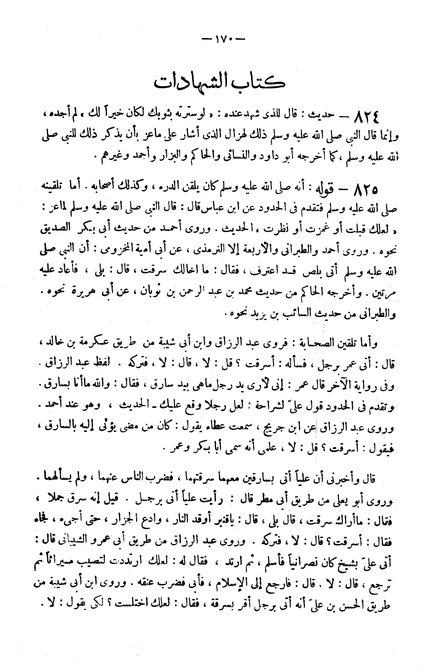 قَالَ وَأَخْبرنِي أَن عليا أَتَى بسارقين مَعَهُمَا سرقتهما فَضرب النَّاس عَنْهُمَا وَلم يسألهما وَرَوَى أَبُو يعْلى من طَرِيق أبي مطر قَالَ رَأَيْت عليا أَتَى بِرَجُل قيل إِنَّه سرق جملا فَقَالَ مَا أَرَاك سرقت قَالَ بلَى قَالَ يَا قنبر أوقد النَّار وادع الجزار حَتَّى أجئ فجَاء فَقَالَ أسرقت قَالَ لافتركه وَرَوَى عبد الرَّزَّاق من طَرِيق أبي عَمْرو الشَّيْبَانِيّ قَالَ أَتَى عَلَى بشيخ كَانَ نَصْرَانِيّا فَأسلم ثمَّ ارْتَدَّ فَقَالَ لَهُ لَعَلَّك ارتددت لتصيب مِيرَاثا ثمَّ ترجع قَالَ لَا قَالَ فَارْجِع إِلَى الْإِسْلَام فَأَبَى فَضرب عُنُقه وَرَوَى ابْن أبي شيبَة من طَرِيق الْحسن بن عَلَى أَنه أَتَى بِرَجُل أقرّ بِسَرِقَة فَقَالَ لَعَلَّك اختلست لكَي يَقُول لَا