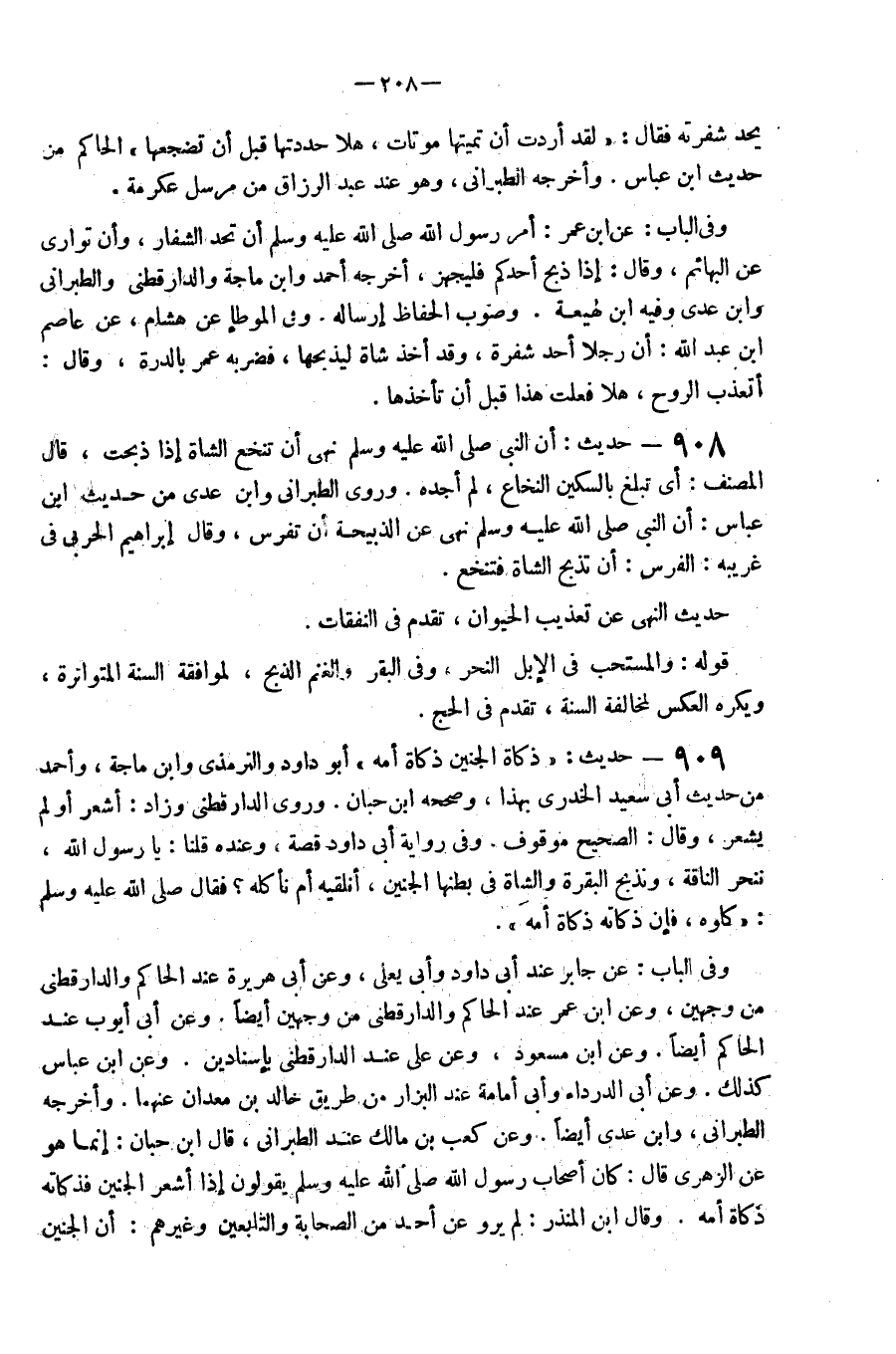 908 - حَدِيث أَن النَّبِي صَلَّى اللَّهُ عَلَيْهِ وَسَلَّم َ نهَى أَن تنخع الشَّاة إِذا ذبحت قَالَ المُصَنّف أَي تبلغ بالسكين النخاع لم أَجِدهُ وَرَوَى الطَّبَرَانِيّ وَابْن عدي من حَدِيث ابْن عَبَّاس أَن النَّبِي صَلَّى اللَّهُ عَلَيْهِ وَسَلَّم َ نهَى عَن الذَّبِيحَة أَن تفرس وَقَالَ إِبْرَاهِيم الْحَرْبِيّ فِي غَرِيبه الْفرس أَن تذبح الشَّاة فتنخع