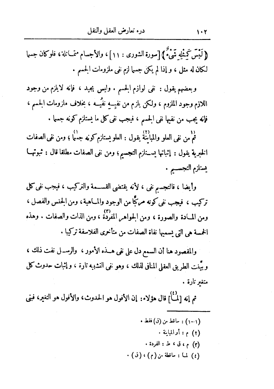 والمقصود هنا أن السمع دل علي نفي هذه الأمور، والرسل نفت ذلك، وبينت الطريق العقلي المنافي لذلك، وهو نفي التشبيه تارة، وإثبات حدوث كل متغير تارة.