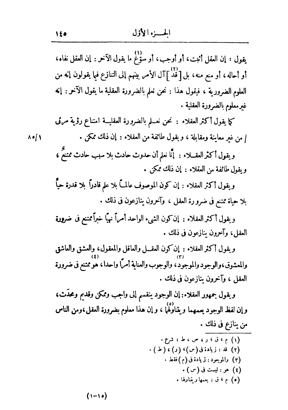 ويقول أكثر العقلاء: إن كون العقل والعاقل والمعقول، والعشق والمعشوق، والوجود والموجود، والوجوب والعناية أمراً واحدا، هو ممتنع في ضرورة العقل، وآخرون ينازعون في ذلك.