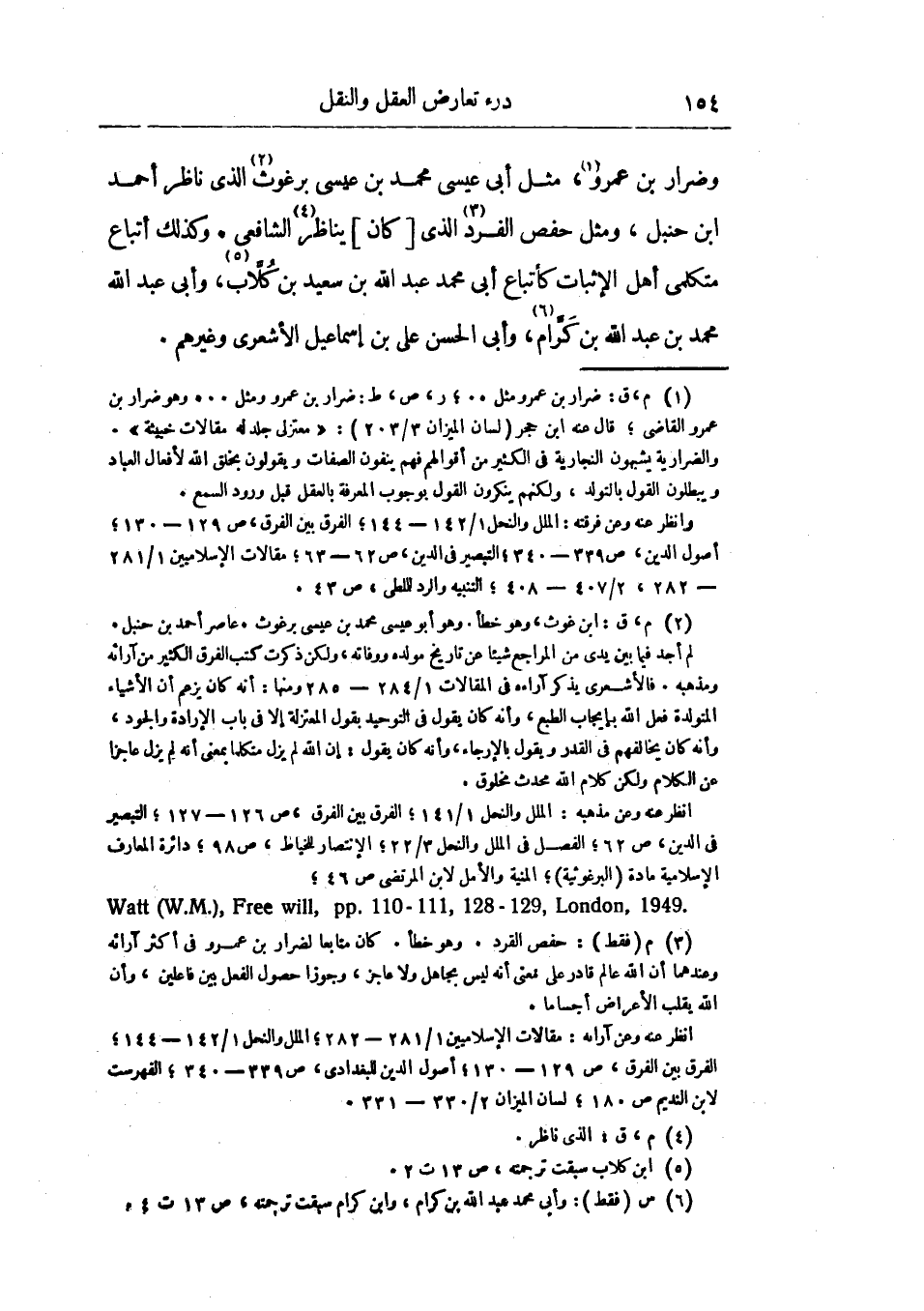وضرار بن عمرو، مثل أبي عيسي محمد بن عيسي برغوث الذي ناظر أحمد بن حنبل، مثل حفص الفرد الذي كان يناظر الشافعي، وكذلك أتباع متكلمي أهل الإثبات كأتباع أبي محمد عبد الله بن سعيد ين كلاب، وأبي عبد الله محمد بن عبد الله بن كرام، وأبي الحسن علي ابن إسماعيل الأشعري وغيرهم.