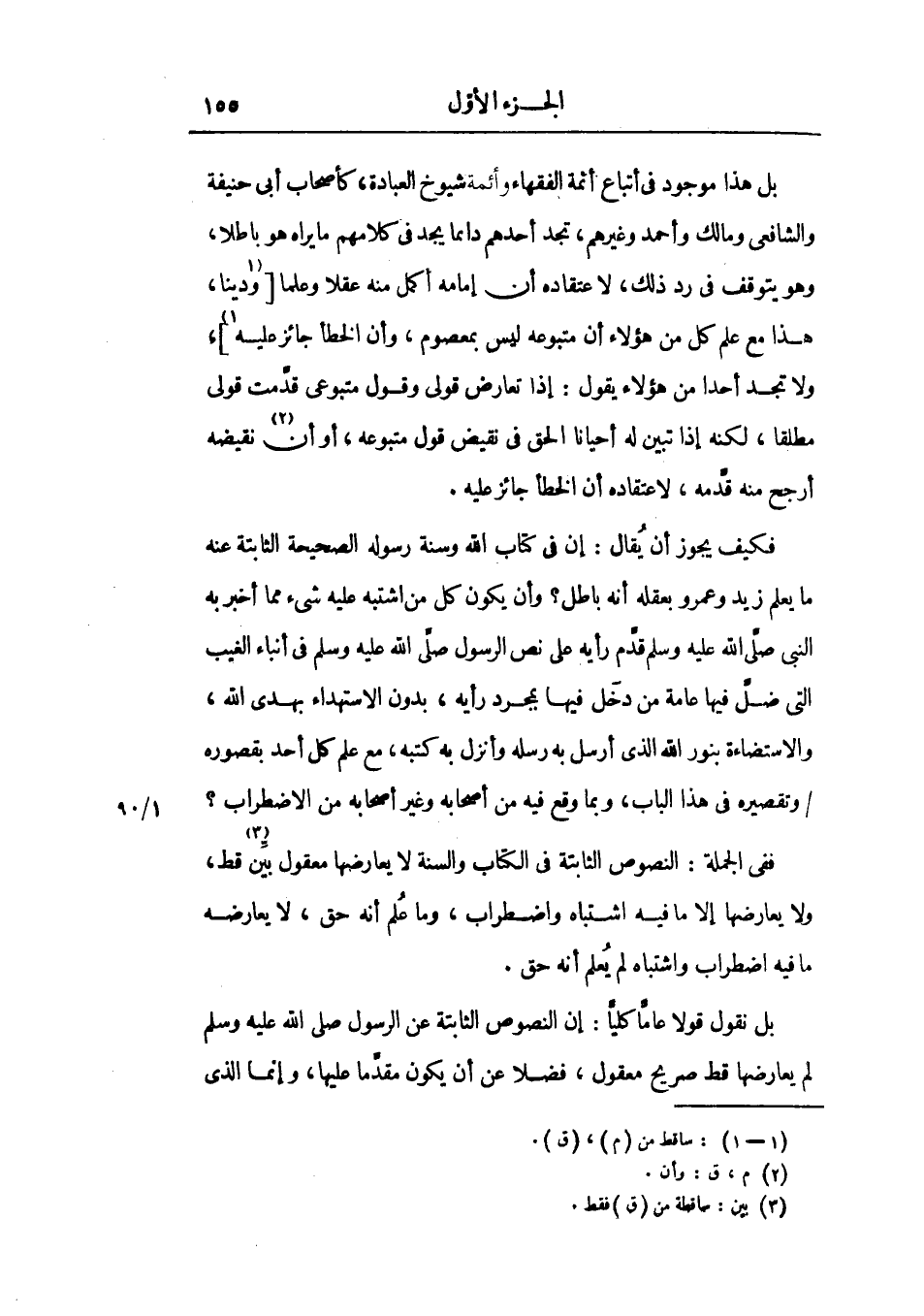بل هذا موجود في اتباع أئمة الفقهاء وأئمة شيوخ العبادة، كأصحاب أبي حنيفة والشافعي ومالك وأحمد، وغيرهم، تجد أحدهم دائماً يجد في كلامهم ما يراه هو باطلاً، وهو يتوقف في رد ذلك، لاعتقاده أن إمامه أكمل منه عقلاً وعلما وديناً، هذا مع علم كل من هؤلاء أن متبوعه ليس بمعصوم، وأن الخطأ جائز عليه، ولا تجد أحداً من هؤلاء يقول: إذا تعارض قولي وقول متبوعي قدمت قولي مطلقاً، لكنه إذا تبين له أحياناً الحق في نقيض قول متبوعه، أو أن نقيضه أرجح منه قدمه، لاعتقاده أن الخطأ جائز عليه.