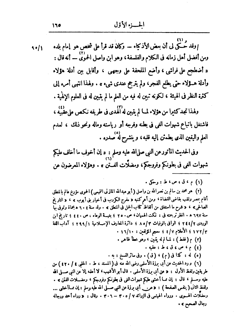 وقد حكي لي أن بعض الأذكياء ـ وكان قد قرأ علي شخص هو إمام بلده ومن أفضل أهل زمانه في الكلام والفلسفة، وهو ابن واصل الحموي ـ أنه قال: أضطجع علي فراشي، وأضع الملحفة علي وجهي، وأقابل بين أدلة هؤلاء وأدله هؤلاء حتى يطلع الفجر، ولم يترجح عندي شيء، ولهذا انتهي أمره إلي كثرة النظر في الهيئة، لكونه تبين له فيه من العلم ما لم يتبين له في العلوم الإلهية.