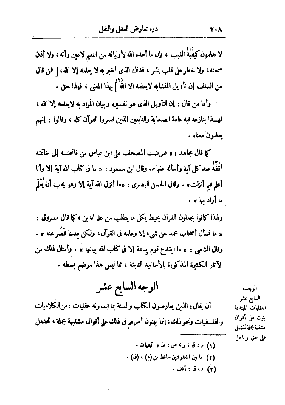 العقليات المبتدعة بنيت علي أقوال مشتبهة مجملة تشتمل علي حق وباطل. الوجه السابع عشر
