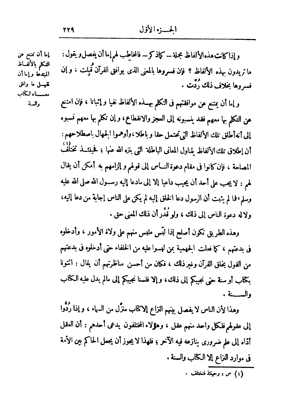 إما أن نمتنع عن التكلم بالألفاظ المبتدعة. وإما نقبل ما وافق معناه الكتاب والسنة