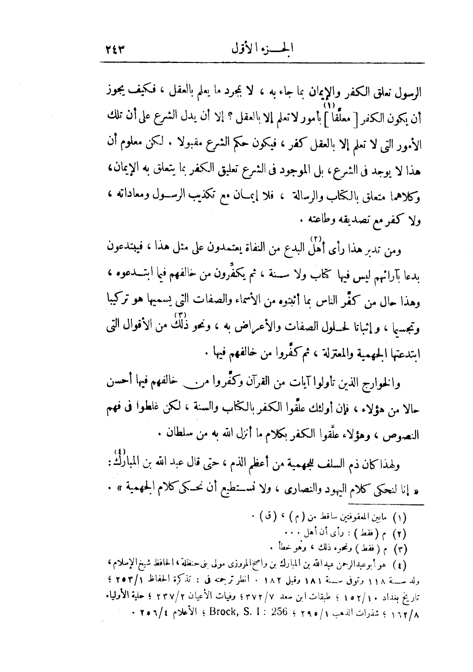 ولهذا كان ذم السلف للجهمية من أعظم الذم، حتى قال عبد الله بن المبارك: إنا لنكي كلام اليهود والنصارى، ولا نستطيع أن نحكي كلام الجهمية.
