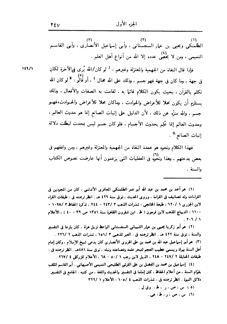 الطلمنكي ويحيى بن عمار السجستاني، وأبي إسماعيل الأنصاري، وأبي القاسم التميمي، ومن لا يحصي عدده إلا الله من أنواع أهل العلم.