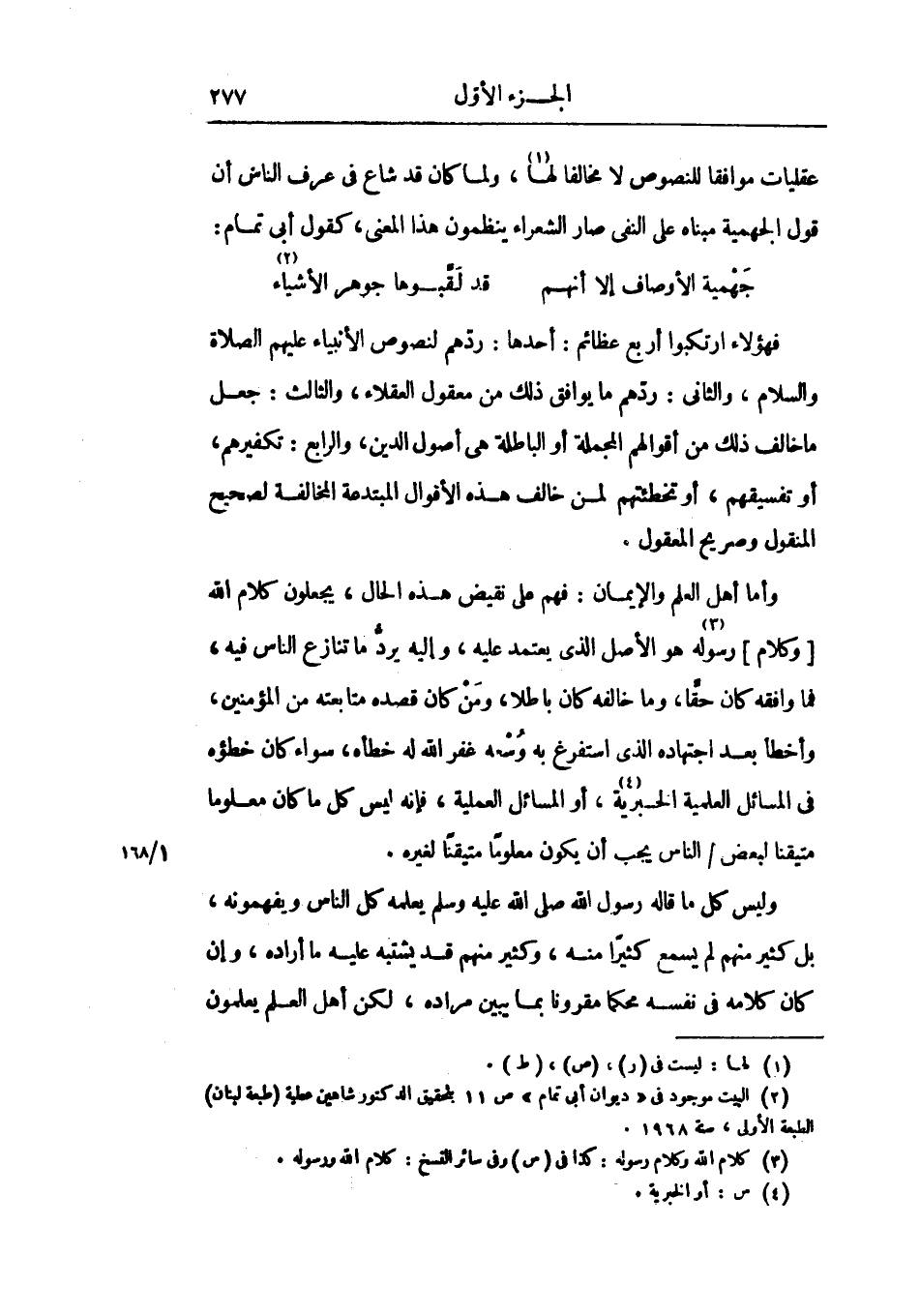عقليات موافقاً للنصوص لا مخالفاً لها، ولما كان قد شاع في عرف الناس أن قول الجهمية مبناه على النفي صار الشعراء ينظمون هذا المعنى، كقول أبي تمام: