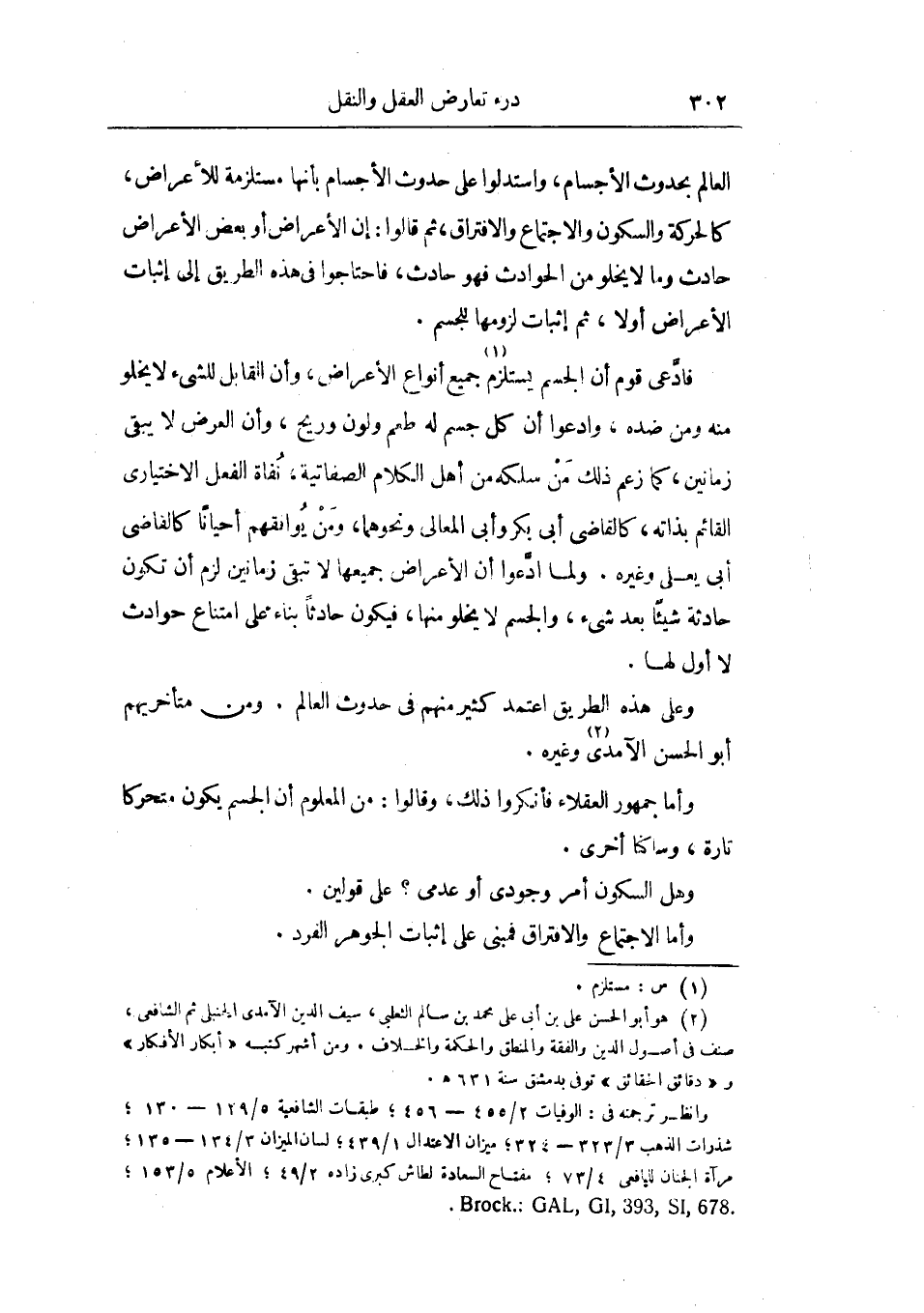 وعلى هذه الطريق اعتمد كثير منهم في حدوث العالم، ومن متأخريهم أبو الحسن الآمدي وغيره.