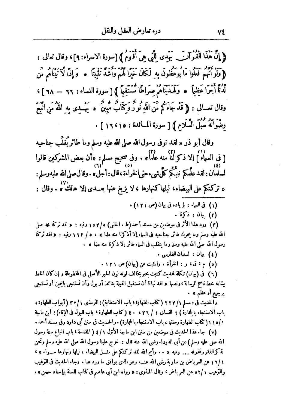 و «قال صلى الله عليه وسلم تركتكم على البيضاء، ليلها كنهارها، لا يزيغ عنها بعدي إلا هالك» وقال
