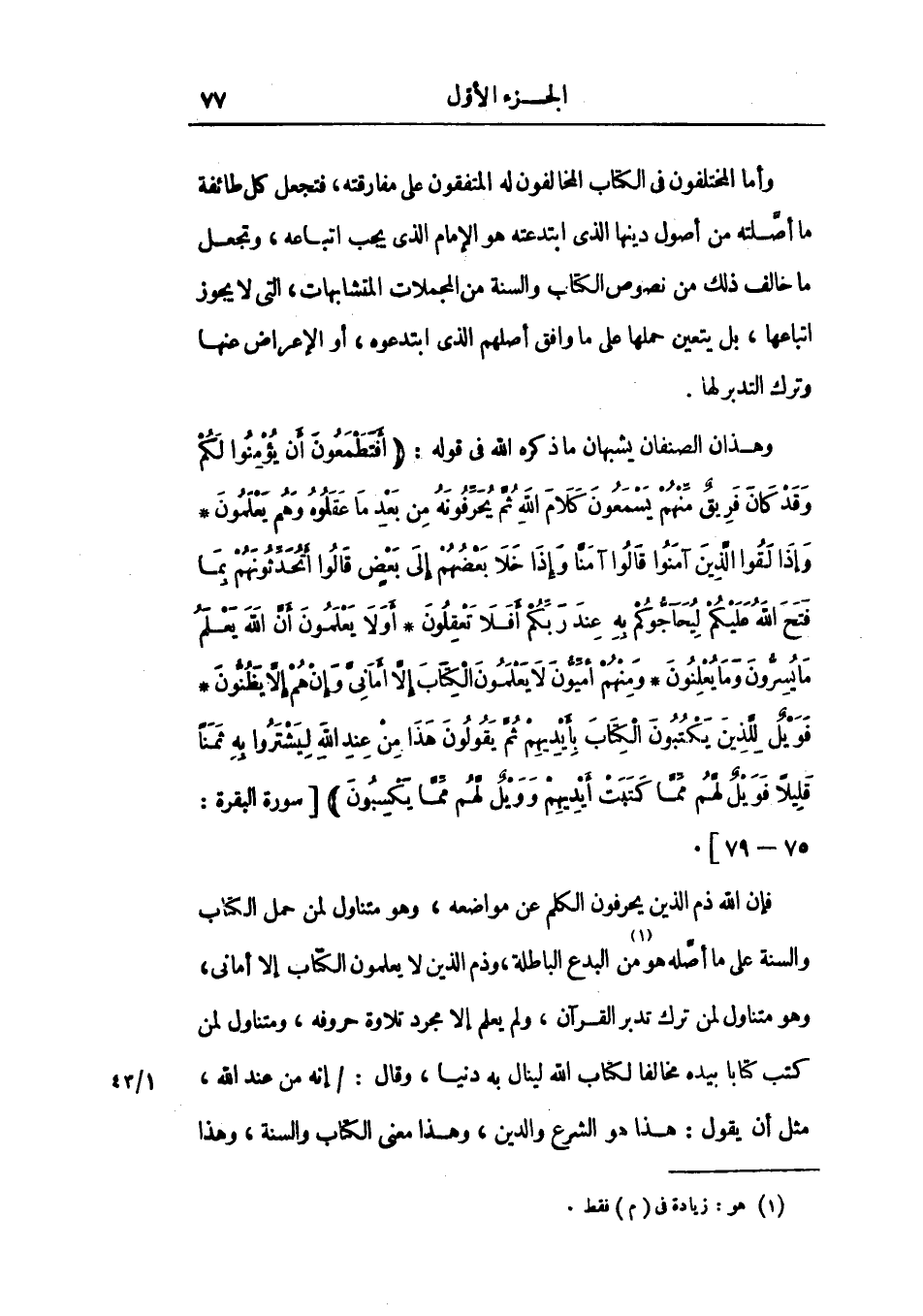 فإن الله ذم الذين يحرفون الكلم عن مواضعه، وهو متناول لمن حمل الكتاب والسنة علي ما أصله هو من البدع الباطلة، وذم الذين لا يعلمون الكتاب إلا أماني، وهو متناول لمن ترك تدبر القرآن، ولم يعلم إلا مجرد تلاوة حروفه، ومتناول لمن كتب كتاباً بيده مخالفاً لكتاب الله لينال به دينا، وقال: إنه من عند الله، مثل أن يقول: هذا هو الشرع والدين، وهذا معني الكتاب والسنة، وهذا