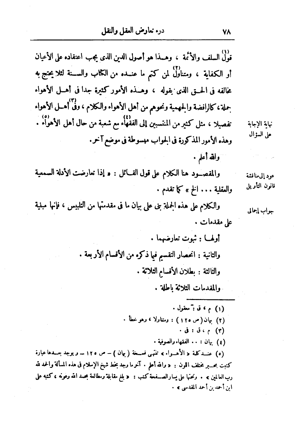 والمقصود هنا الكلام علي قول القائل: إذا تعارضت الأدلة السمعية والعقلية....الخ كم تقدم.