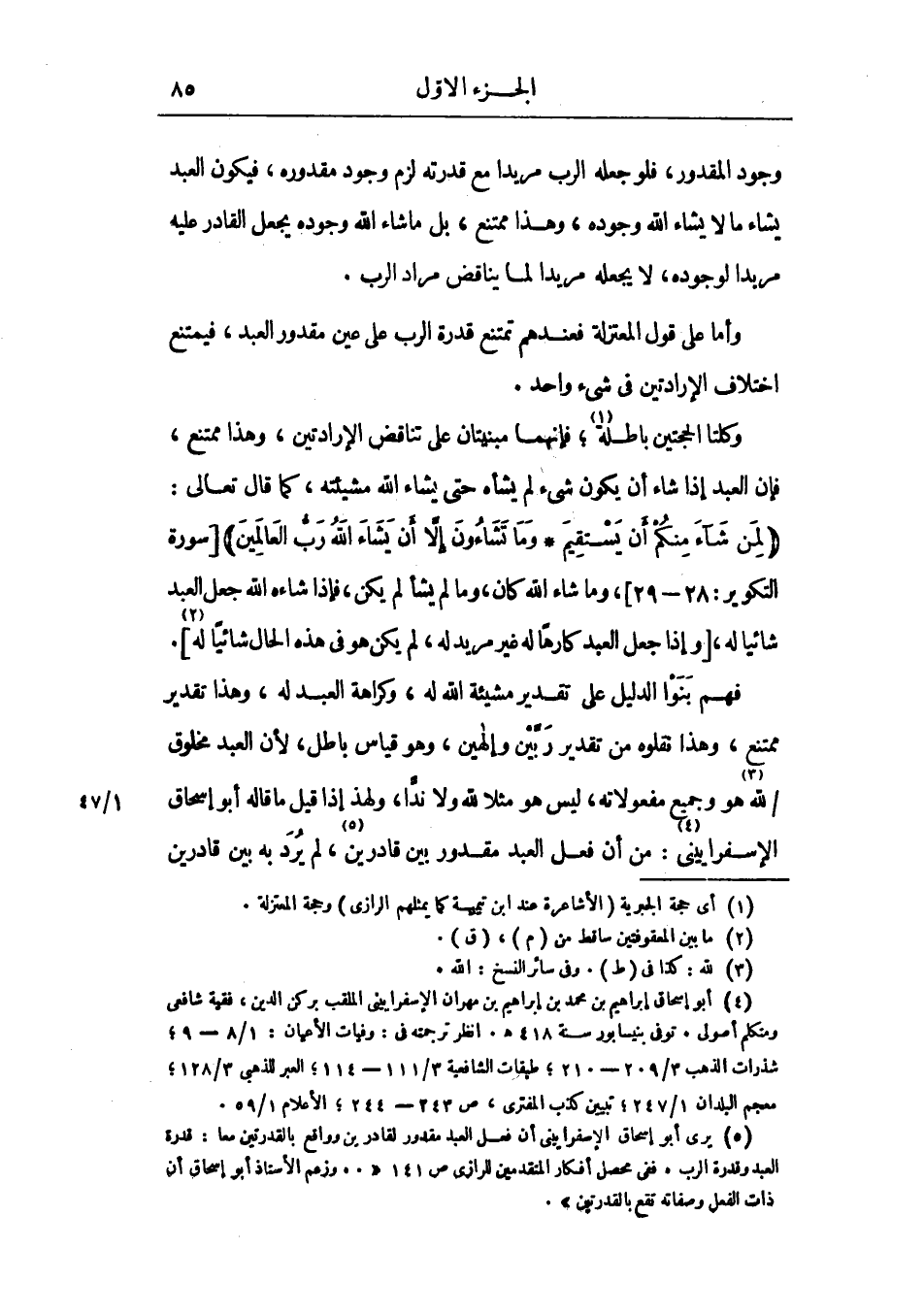 فهم بنوا الدليل علي تقدير مشيئة الله له، وكراهة العبد له، وهذا تقدير ممتنع، وهذا نقلوه من تقدير ربين وإلهين، وهو قياس باطل، لأن العبد مخلوق لله هو وجميع مفعولاته، ليس هو مثلاً لله ولا نداً، ولهذا إذا قيل ما قاله أبو إسحاق الإسفراييني: من أن فعل العبد مقدور بين قادرين، لم يرد به بين قادرين