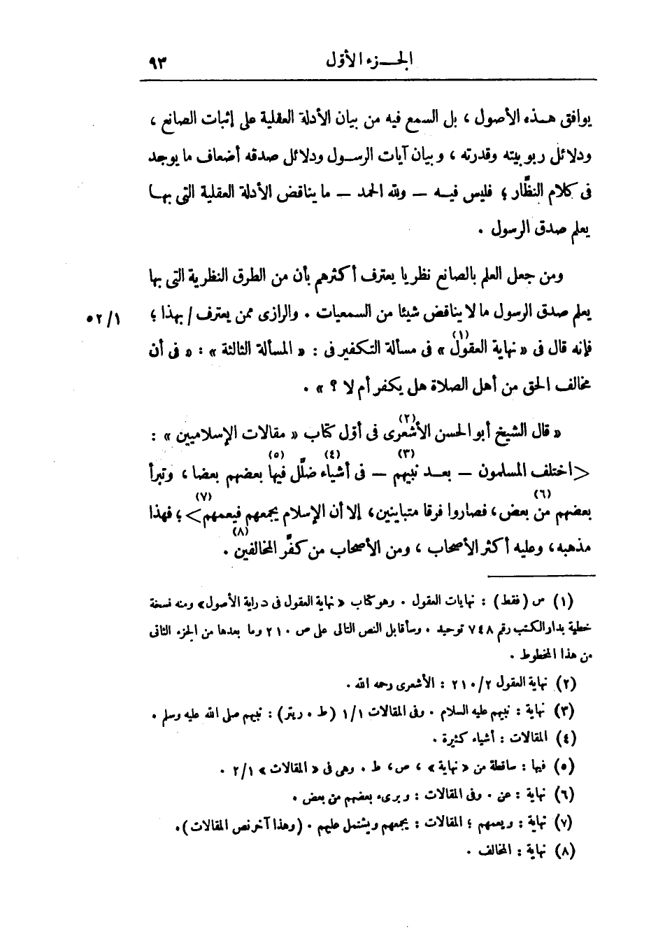 والرازي ممن يعترف بهذا، فإنه قال في نهاية العقول في مسألة التفكير في: المسألة الثالثة: في أن مخالف الحق من أهل الصلاة هل يكفر أم لا؟ .
