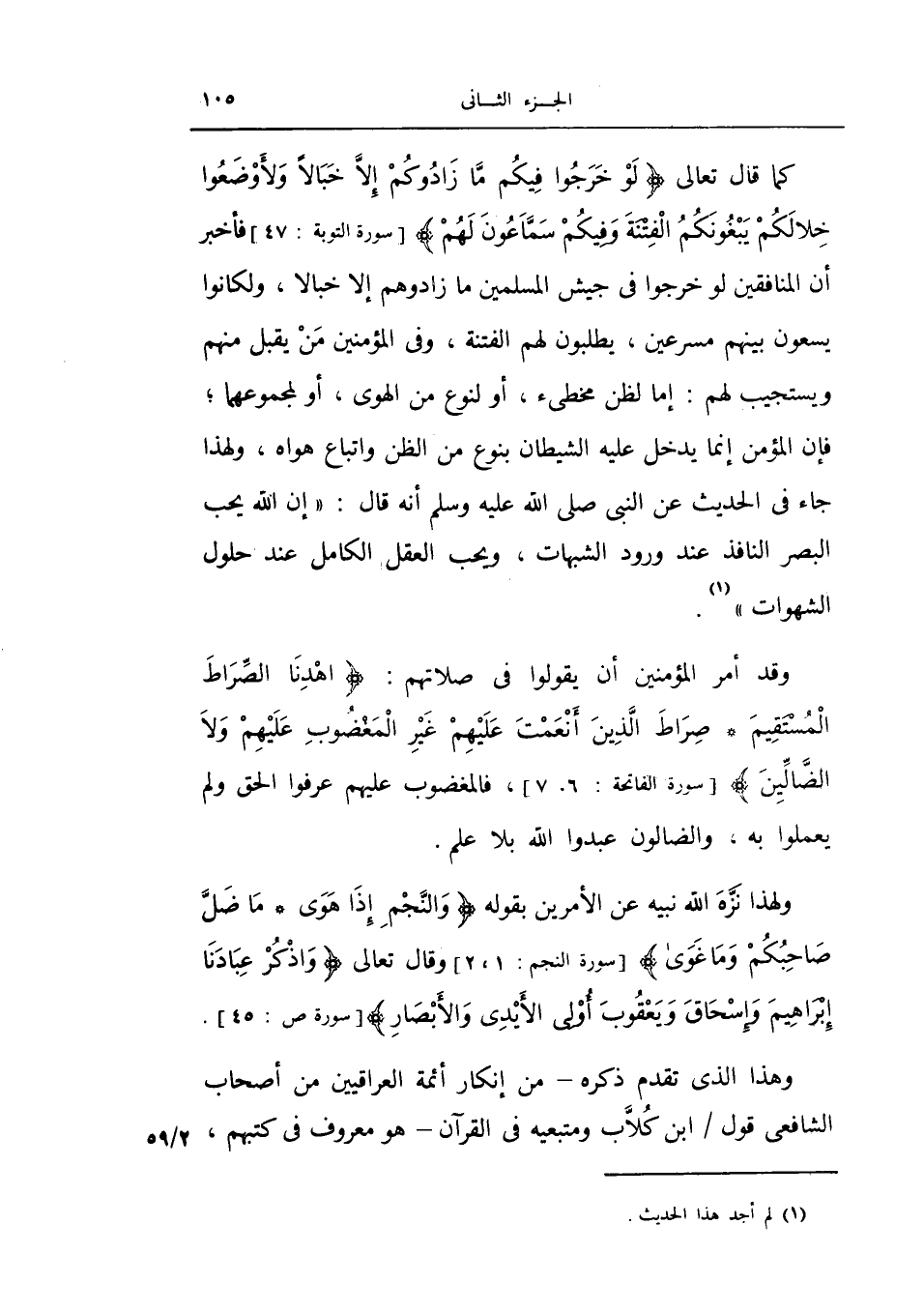ولهذا نزه الله نبيه عن الأمرين بقوله {والنجم إذا هوى * ما ضل صاحبكم وما غوى} (النجم: 1 -2) وقال تعالى: {واذكر عبادنا إبراهيم وإسحاق ويعقوب أولي الأيدي والأبصار} (ص: 45) .