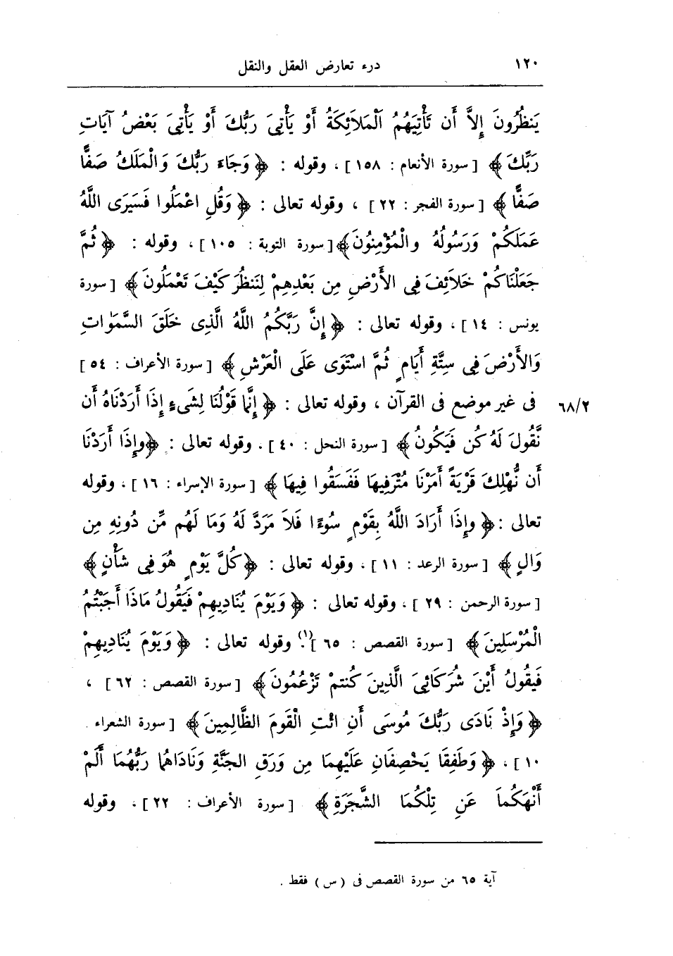 ينظرون إلا أن تأتيهم الملائكة أو يأتي ربك أو يأتي بعض آيات ربك} (الأنعام: 158) ، وقوله: {وجاء ربك والملك صفا} (الفجر: 22) ، وقوله تعالى: {وقل اعملوا فسيرى الله عملكم ورسوله والمؤمنون} (التوبة: 105) ، وقوله: {ثم جعلناكم خلائف في الأرض من بعدهم لننظر كيف تعملون} (يونس: 14) ، وقوله تعالى: {إن ربكم الله الذي خلق السماوات والأرض في ستة أيام ثم استوى على العرش} (الأعراف: 54) في غير موضع في القرآن، وقوله تعالى: {إنما قولنا لشيء إذا أردناه أن نقول له كن فيكون} (النحل: 40) .