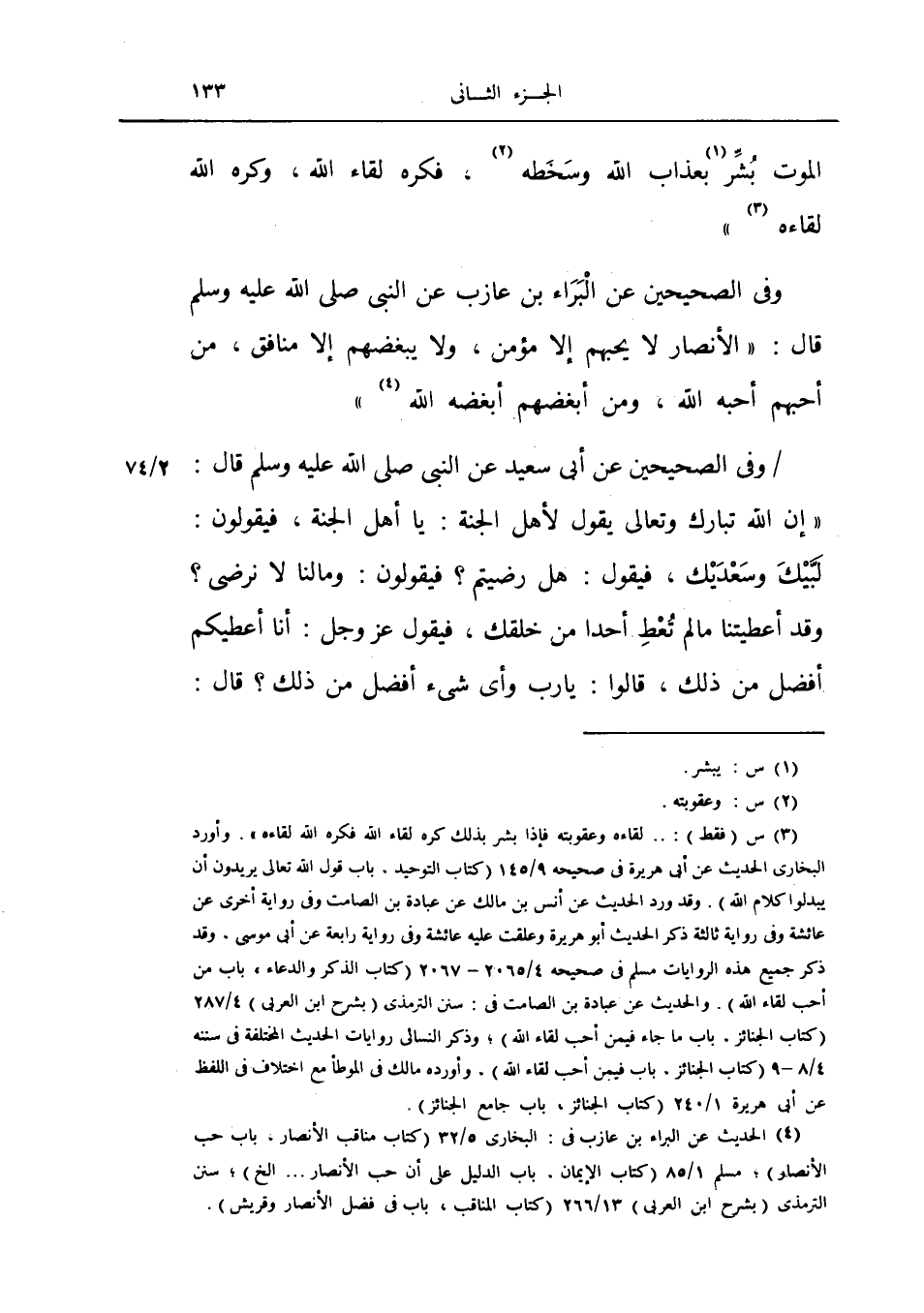 وفي الصحيحين عن البراء بن عازب عن النبي صلى الله عليه وسلم قال: «الأنصار لا يحبهم إلا مؤمن، ولا يبغضهم إلا منافق، من أحبهم أحبه الله، ومن أبغضهم أبغضه الله» .