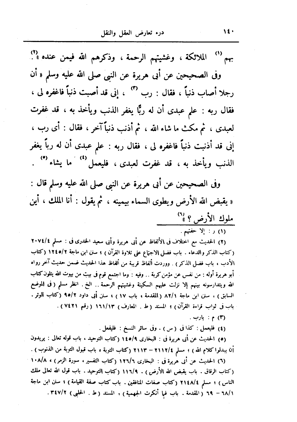 وفي الصحيحين عن أبي هريرة عن النبي صلى الله عليه وسلم «أن رجلاً أصاب ذنباً، فقال: رب، إني قد أصبت ذنباً فاغفره لي، فقال ربه: علم عبدي أن له رباً يغفر الذنب ويأخذ به، قد غفرت لعبدي، ثم مكث ما شاء الله، ثم أذنب ذنباً آخر، فقال: أي رب، إني قد أذنبت ذنباً فاغفره لي، فقال ربه: علم عبدي أن له رباً يغفر الذنب ويأخذ به، قد غفرت لعبدي، فليعمل ما يشاء» .