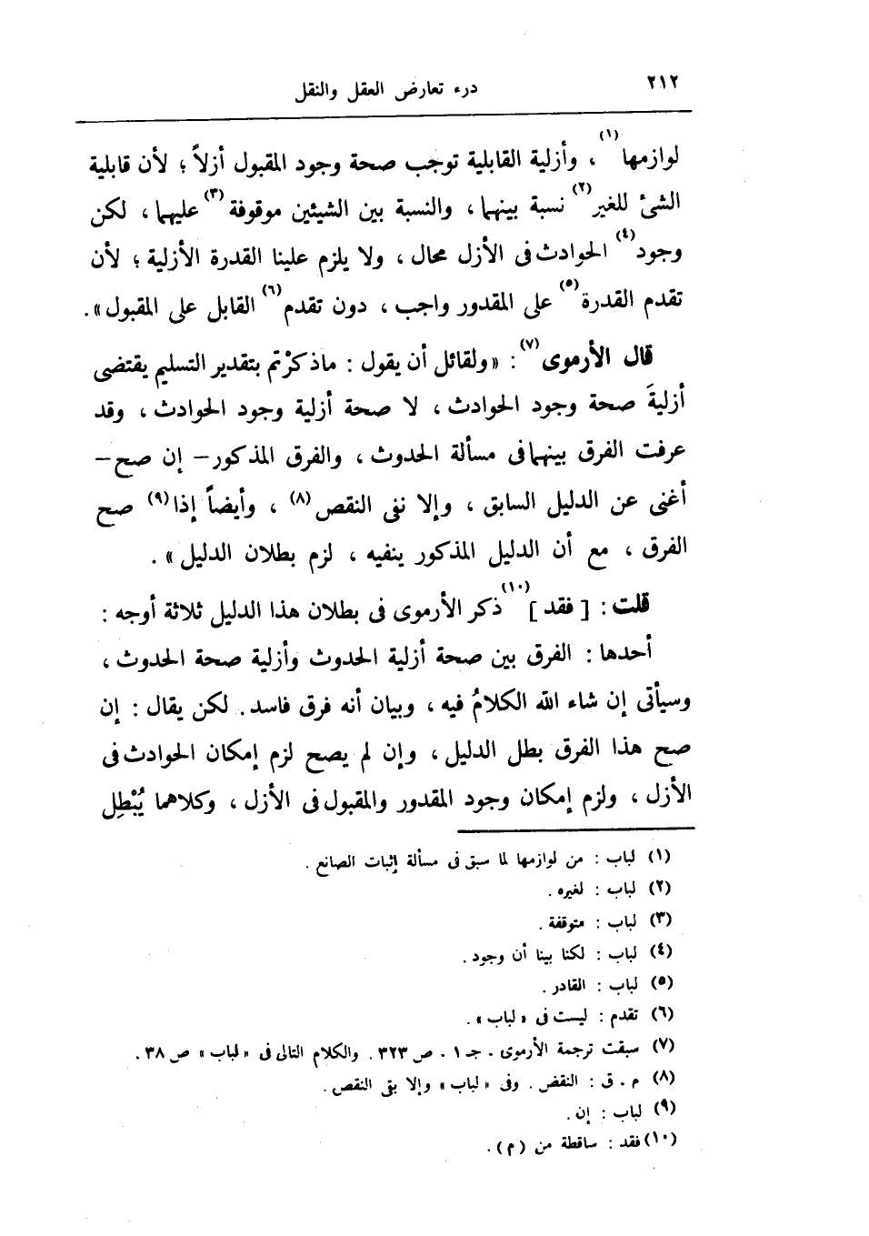 قال الأرموي: (ولقائل أن يقول: ما ذكرتم بتقدير التسليم يقتضي أزلية صحة وجود الحوادث، لا صحة أزلية وجود الحوادث، وقد عرفت الفرق بينهما في مسألة الحدوث، والفرق المذكور - إن صح - أغنى عن الدليل السابق، وإلا نفى النقص، وأيضاً إذا صح الفرق، مع أن الدليل المذكور ينفيه، لزم بطلان الدليل) .