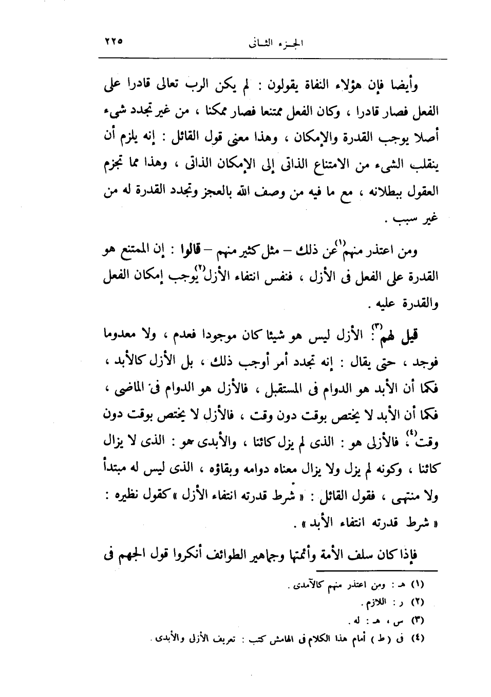 ومن اعتذر منهم عن ذلك - مثل كثير منهم - قالوا: إن الممتنع هو القدرة على الفعل في الأزل، فنفس انتفاء الأزل يوجب إمكان الفعل والقدرة عليه.