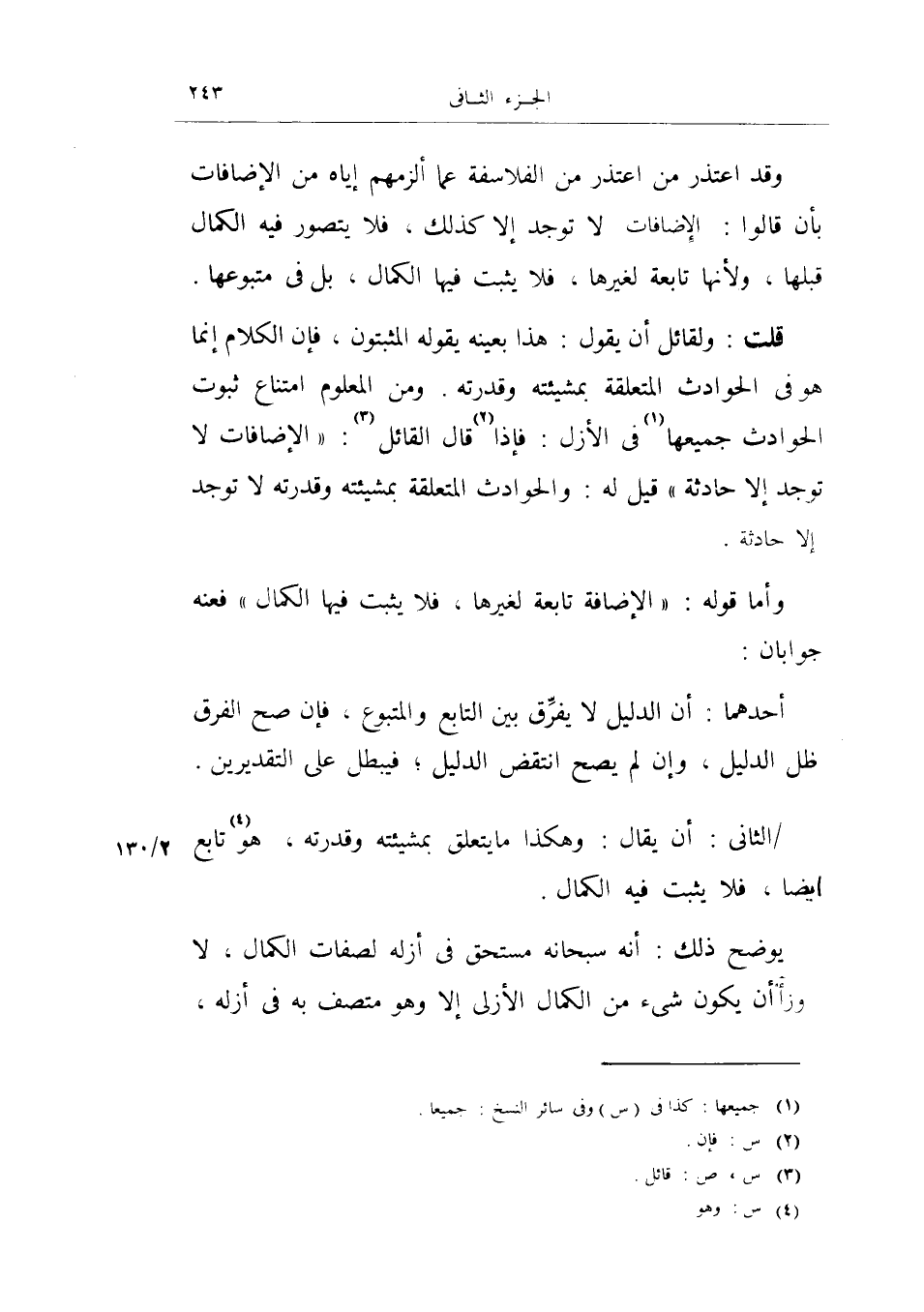 الثاني: أن يقال: وهكذا ما يتعلق بمشيئته وتقدرته، هو تابع أيضاً، فلا يثبت فيه الكمال.