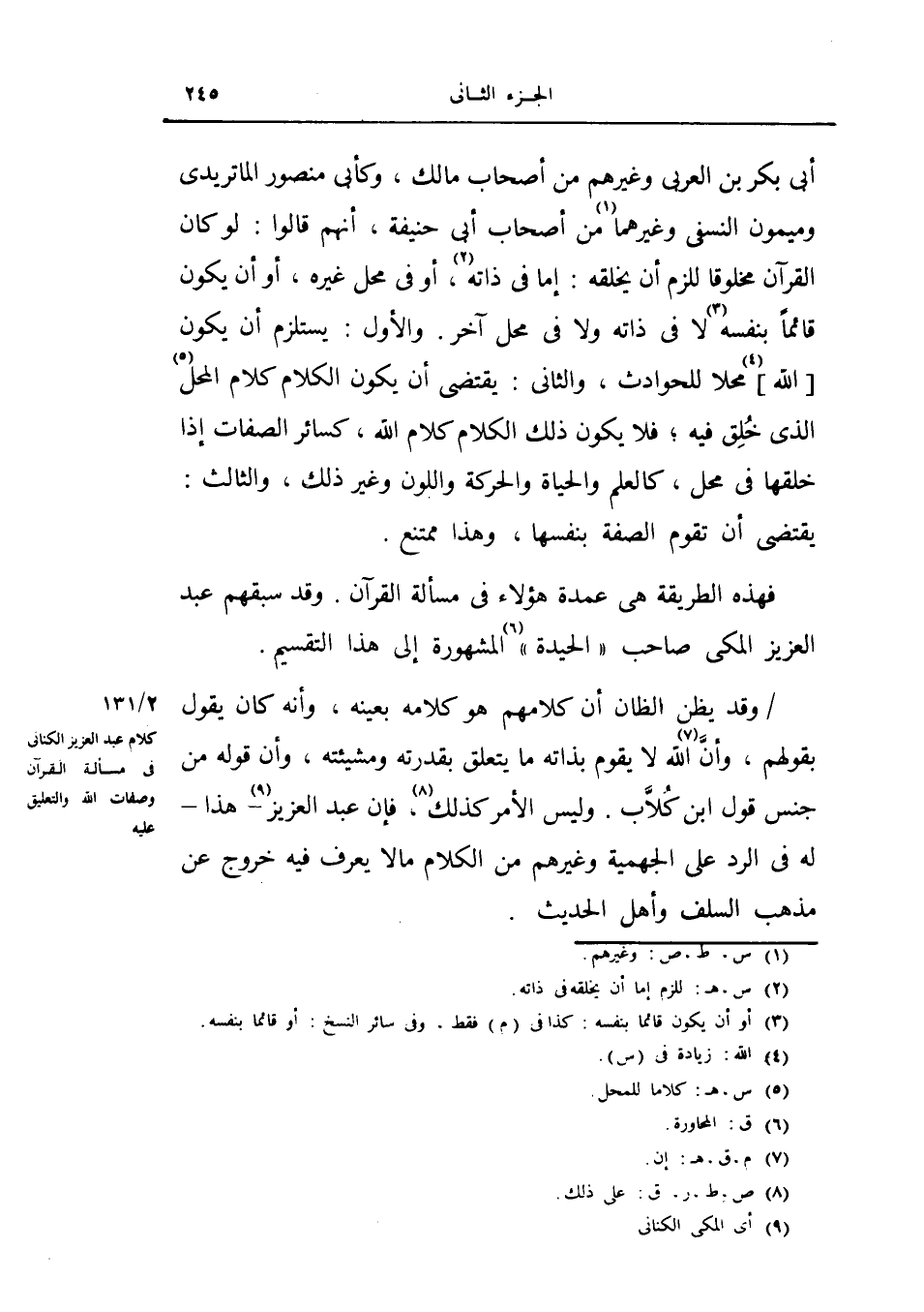قول عبد العزيز الكناني في مسألة القرآن وصفات الله والتعليق عليه